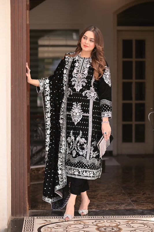Aneela's Collection | Black - red Embroidered Velvet Collection